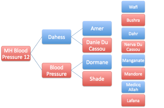 MH NORMANDY is by JABAR : AKBAR and KALINE DU LOUP , so he is 1/2 brother to GHADAB